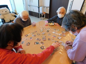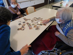 今年も上毛かるたの季節がやってきました。本日は予選を行いました。3グループの方に参加していただき、勝ち抜き戦です。いざ真剣勝負!!なーんて、🎤を使い鈴木が読み手なり2回戦 あれがない、やっぱりあった。お手付きだなんだとスムーズにいくはずもなく笑いが絶えず(*’▽’) 身を乗り出しているのをみるとかわいいなと思ってしまいます。最後は花笠音頭をうたって終了~ またやりますよ~!明日は訪問理美容の日です💛