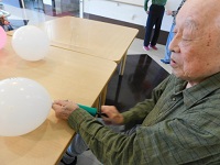 風船の空気入れを道具を使い、、、以外と腕が疲れますが一生懸命に入れてくれました。
