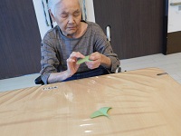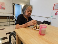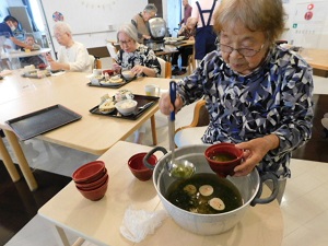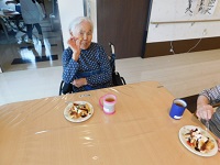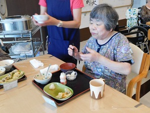 本日、施設の中では天気のことを一瞬忘れてしまうほどの熱気。敬老の日フライングですが食事レクリエーションを行いました。入居者様も積極手にお手伝いいただき感謝 メニューは栗ご飯・お吸い物・茶碗蒸し・天ぷら ご飯と天ぷらはおかわり自由。栗ご飯が人気でした