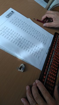 少し難しめの計算問題を、算盤で問いている元商人のK様。