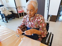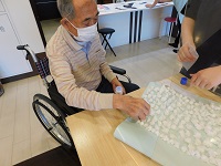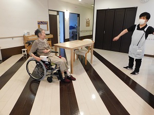 とても暑い。。熱中症要注意ですね わたしはこの夏ネッククーラーを購入。汗が玉のように落ちてくるので少し軽減するかなと思いましたが、あまり私には効果がありまでんした。でも安静にしているときにはやはり涼しさを感じます!バッテリーの消費が半端ないですが。これからの猛暑必需品かもです!?今日はとーふー♪の日 夏場の方が人気ですねやはり。そしてそのあとは京都弁のラジオ体操~ 施設の中はこんな感じで過ごしてます(∩´∀`)∩