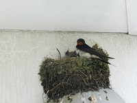 施設のスタッフ玄関のそばに、5月中旬ころ巣作りをしていたツバメ 🐤 只今順調に卵を温めているようです(^.^)