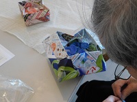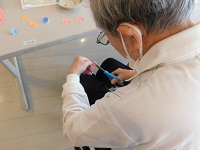 左利きの方ですが、左手に力が入らないとの事で、右手にハサミを持ち制作を手伝って下さいました。