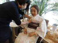 今日も引き続き女性が主役となりメークアップし写真撮影会を開催しました☺「あたしはやらないよ!」と遠慮されていた方もポーズを決めて、素敵なポートレートが!昨日思ったのですが、人に化粧するのは難しいと感じました。でも楽しんでできました(笑) またハンドマッサージのおまけつき! 明日も予定しておりますのでお楽しみに~(∩´∀`)∩
