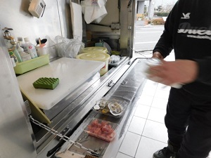 今日の夕方は魚屋さんの移動販売~ あらかじめ依頼していた数名の方以外も魚以外の菓子や果物を選んでおりました。先週生ガキは終わりといっていたのに今日ある。余談になりますが私は生ガキが大好き。買うしかない!今夜おいしくいただきます☺