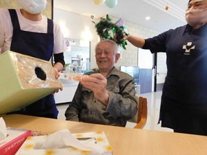 クリスマス会最後はビンゴ大会!昼寝をされる方もいらっしゃるので少し休んでから再び集合!実は一時間もかかってしまったのがこのビンゴ。みなさんの集中力がすごい。半数以上の方にビンゴがでたところで終了♪景品はおつまみゲットつかみ放題 つかめても出口がちいさいのは詐欺?最後の最後に参加証としてビンゴ裏に番号が。はずれなしクジ スタッフも楽しめました。いつもと違うクリスマス会の様子でした。