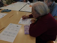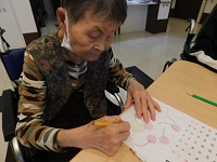 今日の午後は脳トレを行いました。初級の問題から上級の問題までさまざま。