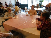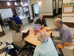 というわけで今日は玉入れです。競うとなると目の色が変わるような気がします笑 勝負は30秒 勝つと万歳三唱。そして気付いたかたが2名いるのですが、赤と白玉の数がちがうんです。どうやっても白が勝つ仕組みなってしまっていたのです。これはこのままでこの先もいこうと思いました(^_-)-☆