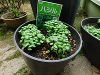 そして先月入居者様と施設の庭に一緒に植えたバジルの種が目を出し育ってきました。