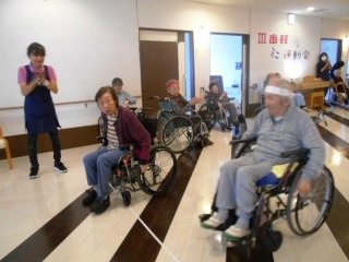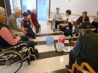 こちらも10月30日の午後に開催されたものご紹介です。チーム赤城団とはるな団にわかれチーム対抗、個人対抗戦で玉入れ、おたまぼーるまわし、車イスリレー、車イス競争を競いました‼チーム戦はもえますね。玉入れは力が入り過ぎて段々前へ。とうとう過誤の目の前に・・笑 玉拾いが間に合わない(・_・;)汗だくでしたスタッフが。 車イスリレーは普段使用していない方が車イスで競いましたが予想以上に奮闘してくだり盛り上がりました。はちまきは団長です!いい汗かきましたね~