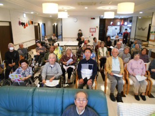 慰問ボランティアさんによるハロウイン歌謡ショーがありました‼懐メロから比較的あたらしめの歌を披露してくださいました。後半は入居者様の好きな歌をリクエストして伴奏と歌をリード。スタッフからは「いい男」の声笑 高校三年生では学生服も着用。年齢は非公表のようですが・・午後のひとときを盛り上げてくださいました。ありがとうございました♪