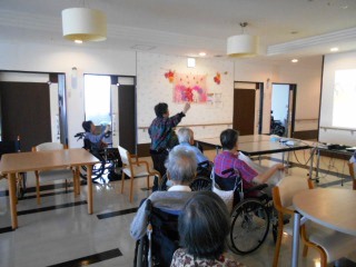 39分音楽に合わせて体操しました。汗だく・・なのは私だけか。懐メロにあわせてなので歌に集中してしまう方のが多いかもしれませんがこの日は違いました。タオルを振り回しいつも以上に体操がんばりました。