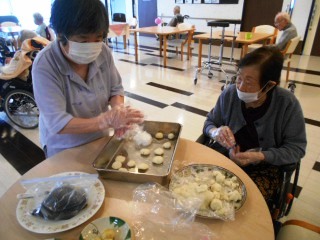台風近づいてますが、、、施設の中では芋餅でみたらし風だんごを作りました‼めちゃくちゃおいしかったです。食べ過ぎ注意なくらい笑 芋餅予想以上に柔らかくて入居者様も食べやすく大好評でした~ヽ(^。^)ノ