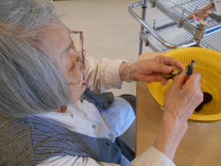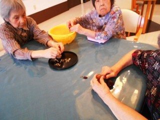 栗を頂きました!栄養士さんに相談し栗ごはんにすることになりました。今回は逆に出来上がりから写真をご覧ください。。スタートは女性入居者様が一生懸命栗をむいてくれるところからです。他スタッフ2人の総勢7名で栗仕事。本来であれば茹でずに生の栗をごはんと炊いた方が風味があるのですが、皮むきが大変なので茹でたものをむくことに・・それでもなかなかの作業でしたがみなさん集中してなんとか終わらすことができました!そのため形がくずれまくってしまいましたが・・笑 そして出来上がったのはやさしい味の栗ごはんが完成しました。
