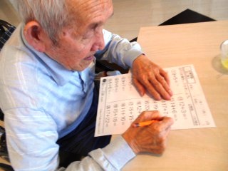 脳トレですね‼足し算、割り算、掛け算 何故か引き算はありません。意味も特になし・・お茶の時間にそっと置いてみると集中されてる方が多かったです。そんな時間のベストショット‼そろばん貸してなんてリクエストにもお答中です。