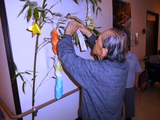笹を頂いてきました~‼3本 1本Ⅱ番館へおすそ分け Ⅲ番館は1Fの廊下にいい感じでアーチ状になって見上げる形になっています(*^_^*)短冊に願いを込めて。個人的な希望から世界平和まで ちょっと☆が足らないかな。少したしていきます