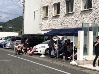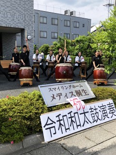 少し遅れて令和を祝おうということでエリアで皐月祭開催しました。5月の晴れ渡る空より夏の陽気の中、おなじみの地元桐生西高校和太鼓部のみなさんです。今活躍は全国区ですね。今年は新入部員が12名も入ったそうです!西高校は男女共学高校で和太鼓部にも男女在籍中。卒業生にはプロになった人もいるそうです