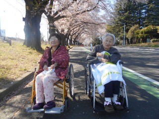 寒い日があったせいか今年の桜は長く見られます。おかげさまで今日も散策にいってくることができましたヽ(^。^)ノ入居者様喜ぶ 私たちも気持ちいい~ 午前と午後では桜が減っているのがなんとなくわかりました。午後は風もなくぽかぽか❀そして遠くの赤城山かな?雪化粧もみられました。