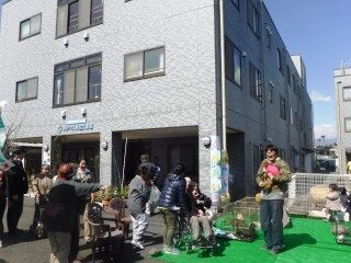 今頃ご報告します。他施設より遅れての報告。作戦ですね笑。3月24日は晴天!ただ風が・・!まぁまぁ強かったです。午前はⅠ番館にて健康チェックイベント。同時にⅠ番館Ⅱ番館の前にて動物ふれあいコーナー初イベント ポニー・羊のモスくん、八木さん(ヤギ)、ハリネズミ・うさぎ、アヒルと思った以上に来てくれました。ハリネズミはとうとう顏がみれず。何か気分を害していたようで・・・仕方なし。たくさんの人が訪れてくれました。