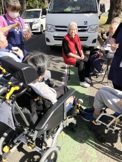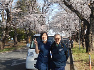施設から車で1分のところにある桐生市運動公園。高齢者施設関連の車が多くありました。とても暖かく私たちは半袖!24度くらいあったようです。今から暑いといっていたらアレですが・・入居者様にとってはとても心地よかったかと思います。そこでⅡ番館の施設長とばったり、パチリ。