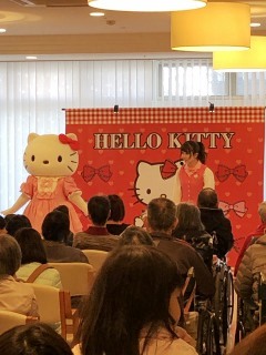 午後は・・桐生初来所?のサンリオハローキティの登場です!1回目のステージではドレス♡で登場。ちびっこたちが大賑わい!ちなみにダンスは早くてわかりませんでした↓↓そうそう出張屋台も!何度もきてもらっているキッチンマルあさんからあげ絶品~&初参加のみどり市クレープノーチェさん めっちゃおいしかった~ またきてほしいと思うのであります。話はキティに戻りますが、Ⅲ番館は午後3時半に施設内を回ってくれました。入居者様も大喜び 女性が特にですね。でもやはりスタッフのボルテージの方が高かった。。そんなわけで記念撮影(*^。^*)長いようなあっという間の一日でしたが内容の濃かったことは間違いない。ですね!