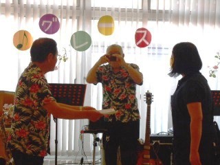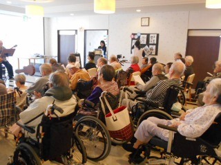 45分ジャズあり、歌謡曲あり、歌あり。最後の曲が終ると小さな声でアンコール。。段々大きな声で・・アンコール‼お二人に届き更に2曲。それからそれから。。。慰問ボランティアとしての貢献を称えさせていただき表彰をさせていただきました。最後はみんなで記念撮影♩またのご来場お待ちしております(^_^)/~