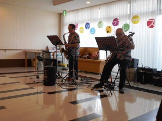 1年ぶりに演奏会が開かれてました‼司会を仰せつかった私。緊張はしません。台本があるから。今回で78回目の演奏会というお二人。100回目はうちで是非なんてトークを交えながら進行。前も思ったけど機材がとにかく多いのです。毎回大変だろうなと思うと「音楽やっててよかった」と思うことが多いそうで苦労もなんのその。テナーサックスは私と同じ年代くらいの代物。年季が違いますね‼そんなこんなで定刻にスタート♪お客様はⅠ番館から、Ⅱ番館からもいらっしゃってます。