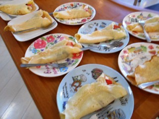 バレンタインということでスタッフが練に練った今年の計画はクレープ‼13時~焼き始め。粉は1キロ購入。余裕だろうと誰もが思いました・・がしかしギリギリ。今度は1.5キロか?と笑。トッピングは生クリーム チョコソース イチゴ バナナ リンゴ煮 キウイ いい感じじゅあないですか。ライブで作っているところをみてもらうのいいですよね‼今回は3階に全員集合 美味しくいただきました。