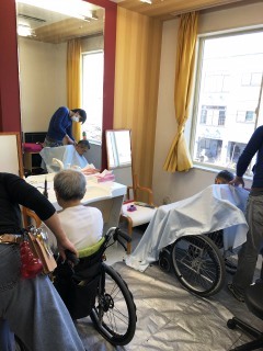 スマイリーさんが今月も来てくれました。2階の理美容室前は長蛇の列 ちょっとオーバーですが笑 気分転換になるし会話のきっかけになりますよね。本日は12名の方がご利用いただきました。男性がこまめですよね‼