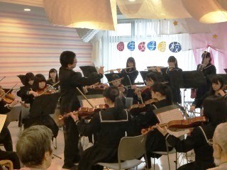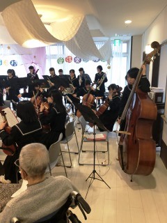 曲目はトトロから故郷、モーツァルトまだ幅広く厚みを感じました。昨年より弦楽器の演奏が多く思えました。そうなのです昨年に続き2度目の演奏会となった今回、入居者様からリクエストがあり桐女の校歌をお願いしたところ最後に演奏をしてくださり懐かしそうに聞いておられる方がいました。そしてアンコール‼ ホントのホントに最後の曲はこの時期にふさわしい「仰げば尊し」泣けてしまう私。素晴らしい時間を過ごさせていただきました。青柳先生はじめ生徒の皆様、また楽器運搬にご協力いただいた保護者の皆さまへこの場をかりて御礼とさせていただきます。ありがとうございました。