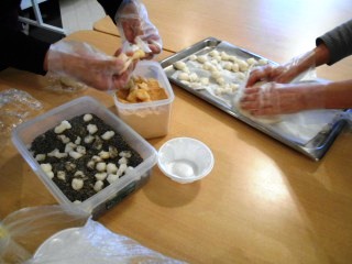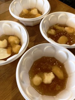 持ちが出来上がったあとがやはり忙しい(・_・;)小さく丸めて といってもくっついちゃうので大変。きなこ・胡麻・からみ・お汁粉の4種類。作りながらつまんだり、もっと手伝うよと入居者様たち。とっても助かりました。とても柔らかくってやっぱりおいしいお餅みんなで頂きました‼
