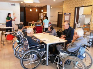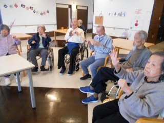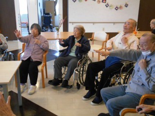 今回は座ってできる手の運動‼左右で違う動きは先生役のスタッフも間違えるという・・※入居者さんから私は聞きました笑 大変なのですね‼一日30分でも日常と離れて行うこと、考えること、体を動かす事、大切に続けていきたいですね~