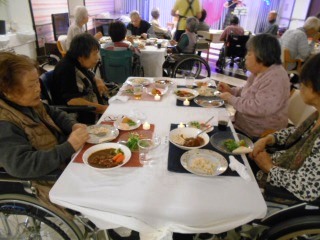 今年も開催しました‼秋の夜長のコンサート♩準備から楽しませていただきました。ステージは「ほし」をイメージ クリスマスには早いので星をイメージしました。いつも自画自賛してしまう私。自画自賛って自分の画とかくんですね‼自分の絵を褒めるということでしょうか。ウィキで調べてみます。今年はバイオリンだけでもすごいのにピアノとデュオ。ピアノは以前からやりたかったのですがなんせ物がないことからでしたが当面おかりすることができましたので実現へ。楽器が出来るのはすごくうらやましいです。今からでもやればいいのだけど。せっかく施設にピアノがあるのでここで先生にきてもらおうかなとも密かに思っています。。前置きが久しぶりに長くなりましたが、17時半となりドレスアップしたお二人が再登場。さぁ皆さまを演奏会に誘います。。