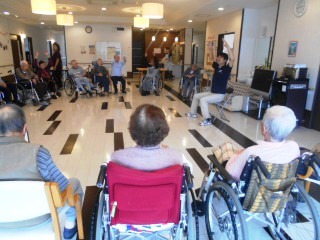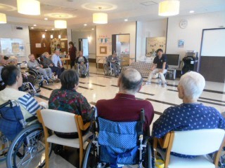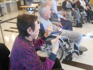 30人で笠原PTを囲んでの座ったままできる体操の時間がありました。とっても圧巻です。大きなサークルで先生を囲んでの体操レク。先生は大きな声でみなさんの視線を浴び益々輝かんばかり・・。新しい体操を教えて頂き時々実践したいと思います。