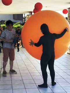 続いては桐生西高校ダンス部初参加‼こういったイベント参加は初だといっていましたが堂々と踊ってくださいました。曲と曲のツナギがかっこよくて隣でノリノリの私。やはり風が強いのを忘れてしまうくらい釘づけになってしまいました。USAはテンションが上がりますね(*^。^*)強風であることはお伝えした通りなのですが影響を受けてしまったのがジャグリングです。皿回し、ディアボロは飛んで行ってしまう始末。高橋ブラザーズさんは時短ですすめ大技の大きい風船に‼ところが思ったより早く割れてしまい申訳ないといたたまれない気持ちが伝わります。。