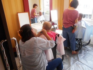 今回は希望者様が多くいらっしゃいました。女性の中にはパーマ・カラーも そんな中お湯が出なくなるトラブル発生!実は厨房の給湯器の修理に業者さんがきていたのですが理美容室の給湯器と共有だったのです。知らなかった・・そんなこんなでしたが皆さまのカットは無事終了。表情も晴れやかになりました。![]()