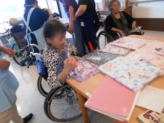 女性が9割を占め、一枚一枚広げて色がね~ サイズがね~といつもと違った表情をみることができました。スタッフも購入したのですがタオルケットが安い‼かわいい‼なのでした。
