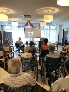 何回目かわすれてしまいましたが・・施設対抗カラオケ大会が開催されました♬♪歌う方は緊張されているのが司会をしていたわたしに伝わる伝わる。スタッフに付き添われながら歌う方、マイペースに歌わられる方それぞれ。歌い終わると満面の笑みでやりきった感も伝わります。交流の場として今後も定期開催していく予定でございます(*^。^*)