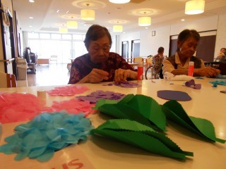 施設の中にあじさいが続々と咲き誇っています。どうですきれいにできてますでしょ。飾り付けまで入居者様がやってくださいました♬次は何が出来るか楽しみです(^_-)