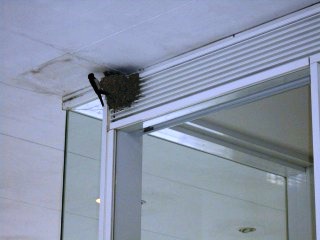 昨年初めてツバメが巣作りし巣立ちました。巣はそのまま残っていましたが今年、巣を再利用し新たにツバメのベビちゃんたちが生まれました。静かなのでわからなかったのですが、親鳥が活発になってきたのでもしかしてとのぞいたところ・・写真わかりにくいのですが3羽見えました。無事生まれていたのですね(*^。^*)巣の場所は玄関前でした。