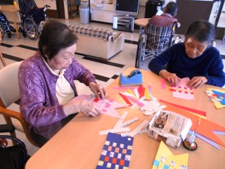施設内はいそいそと鯉のぼりを作成中です。細かい作業ですが、夢中になって作業をすすめておられました。たくさん泳ぎだすのが待ち遠しいです~♪