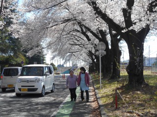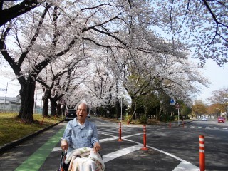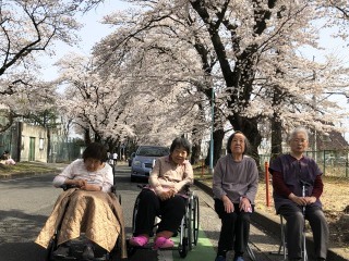 いい天気でしたね~天気予報では明日も暖かくなるとのこと。桜も今日と明日が見頃なので予定前倒しで外出することに。施設から徒歩5分程度の運動公園には桜のトンネルができており人と車であふれていました。予定ではテーブルもと思いましたが取り急ぎイスのみで運動公園内にあるあいはら製菓店へ団子を買いに。予想通り売り切れ‼大福を購入し女性のみでしたが分けあいながら花との時間を楽しむことができました。さくらの下には人が集まりますね(*^。^*)
