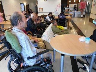 みんな大好きカラオケタイム♪トップバッターでマイクを握ったのは私、歌えそうな気がするということで「おもいで酒」を入居者様と。その後はお茶をセッティングするまで1時間ノンストップです。皆様が水分補給をされている間にまた私がマイクを握りBGMを。最近の傾向として唱歌を合唱することが増えました。今はお腹から声をだそうと練習中です。目指せカラオケ大会歌唱賞 ですね。