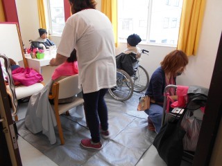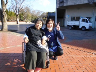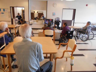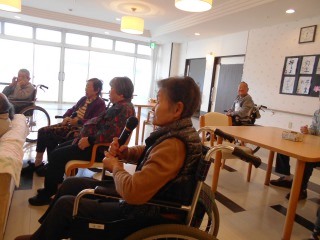 暖かい日ですね(*^。^*)日向ぼっこしている方をこっそり撮影(事後承諾いただいております)また、施設内ではカラオケで盛り上がっています。ヤーレンソーランソーランで手拍子。カラオケ大会優勝を目指します‼