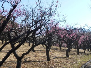 歩いていったその先に広がる梅の森 と言っても背丈は小さくかわいらしい・・・感じです。一部は9部咲かなーといったところですが2~3割程度でまだこれからといった状態でした。少し寒いけど外出は気持ちいいと笑顔なので今回はこれで良し‼