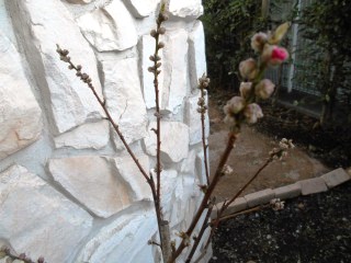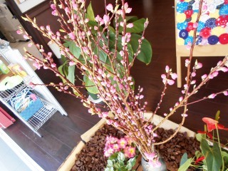 花桃が咲きそうです‼館内は梅と椿で春の訪れが。エントランスも色が増えてきました。楽しみです