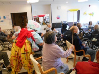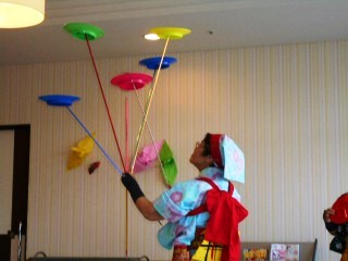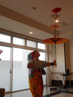 ということでサークル笑さんがきてくれました(*^。^*)皿回し、南京玉すだれの芸を披露してくださりました。皿回しをしたい方はいませんか~の声に挙手する方が多く一緒に参加でき楽しく過ごす事が出来ました。