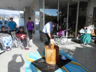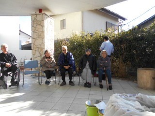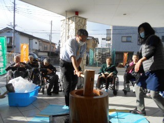 13日の午後2時~もちつきをしました‼今年も臼&杵の貸し出しを懇意にしてくださったのは桐生市内のたちばな保育園様。毎年ありがとうございます(*^。^*)餅つきをする前に・・・湯を張って、ビニール袋をかぶせて・・事前準備に勤しみます。午後になるとそろそろか?と入居者様が集まりだし・・・次へ続く