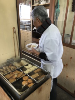 施設から100㍍と近くにあります片柳商店の今時期おすすめ商品は「おでん」1個70円です。やきそばなんと200円。寒~い時などスタッフもお世話になります。今回入居者様2名がおでん食べたいとの事で出かけてきました。おすすめは魚河岸と大根。味が染みついててうまい‼ご家族と出かける方もおります。ちなみに水曜定休日となっております。