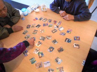 日曜のレクはゲームと言う訳で上毛かるたは以前もご紹介させて頂いてますが、群馬の人なら知名度は抜群ですが昭和22年ごろからあり活動がさかんになったのは昭和40年代頃のようです。学校で、地域で、親子で広がり冬の名物となりました。ルールもありますが、施設ではとりわけ無視してはじめたところ最初はわからないだらけでしたが中盤からは「それは私がとったものだよ」と意欲的な発言がきかれるように4回戦も行うことに。施設内で大会もひらけそうです^_^;